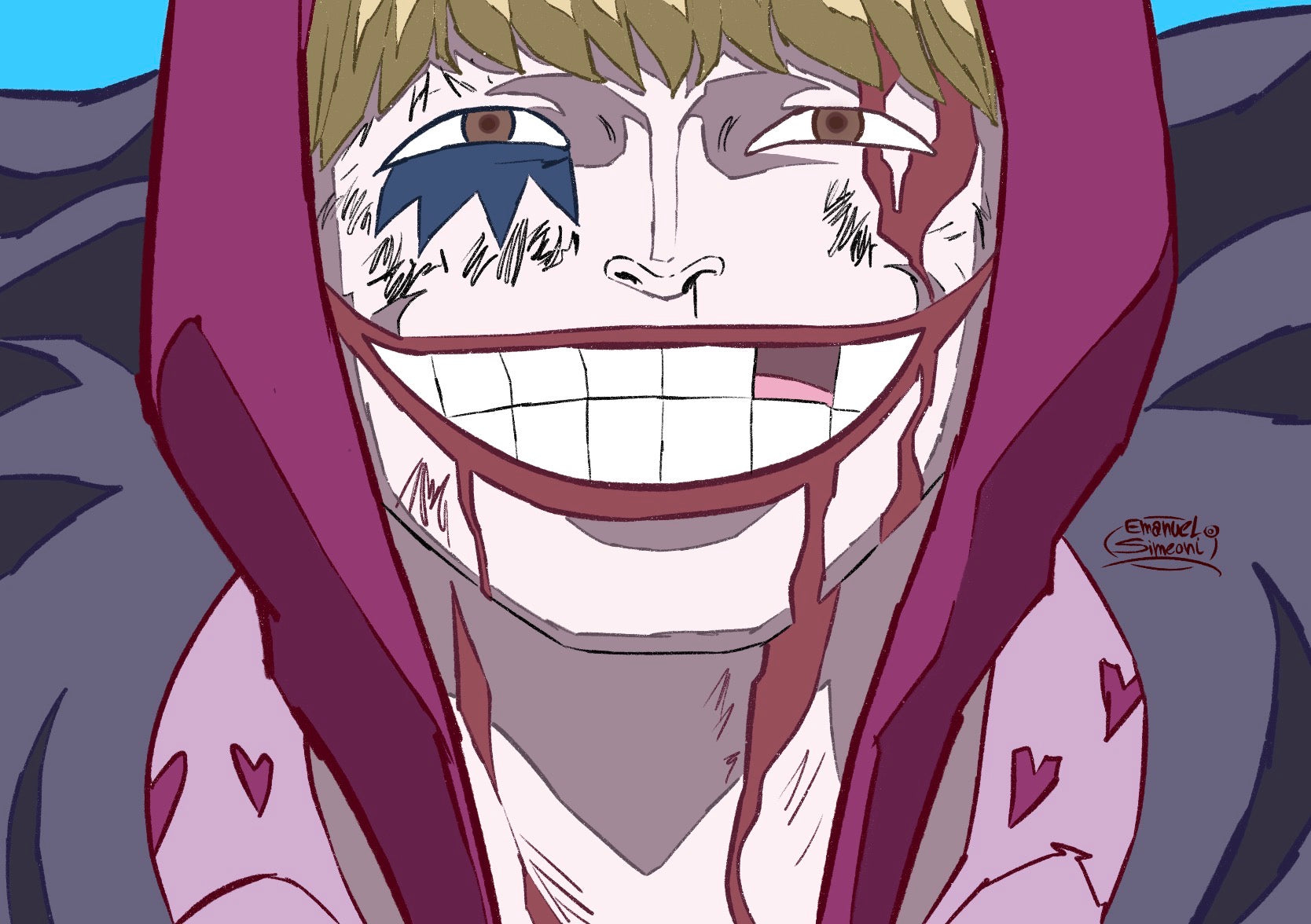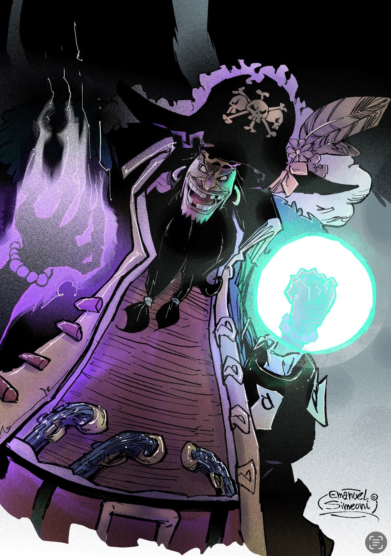 Un'opera d'arte completa che celebra l'universo di One Piece con lo stile distintivo di Emanuel Simeoni.